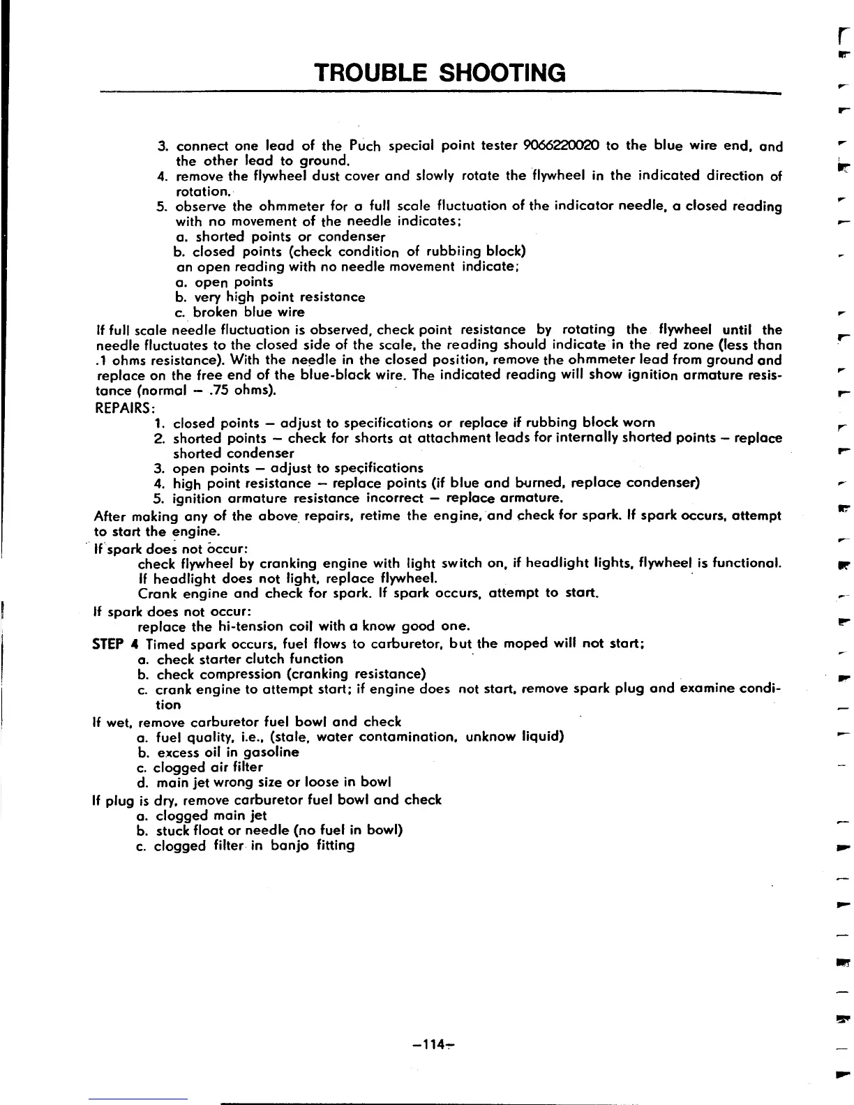 Puch Maxi 50 - Trouble Shooting - Performance; Spark but Fuel Flow Issues