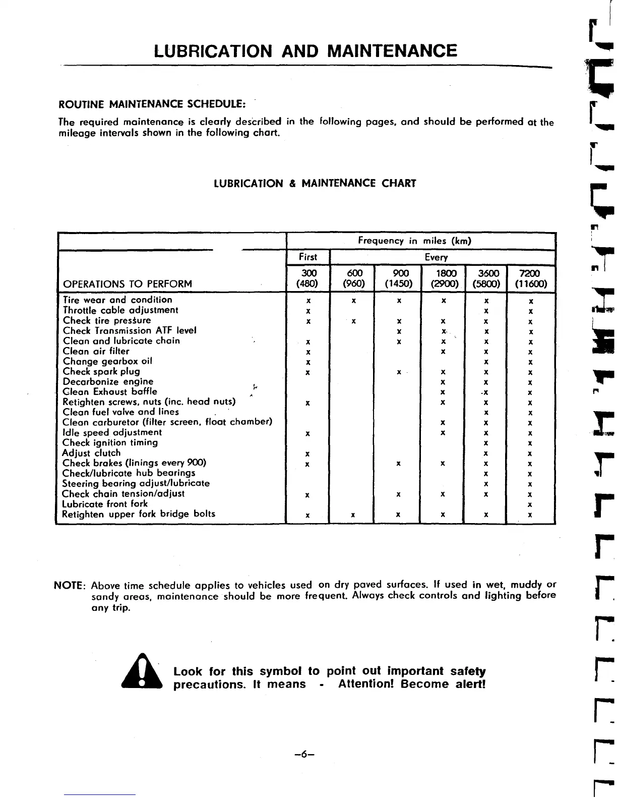 Puch Maxi - Routine Maintenance Schedule; Lubrication and Maintenance Chart