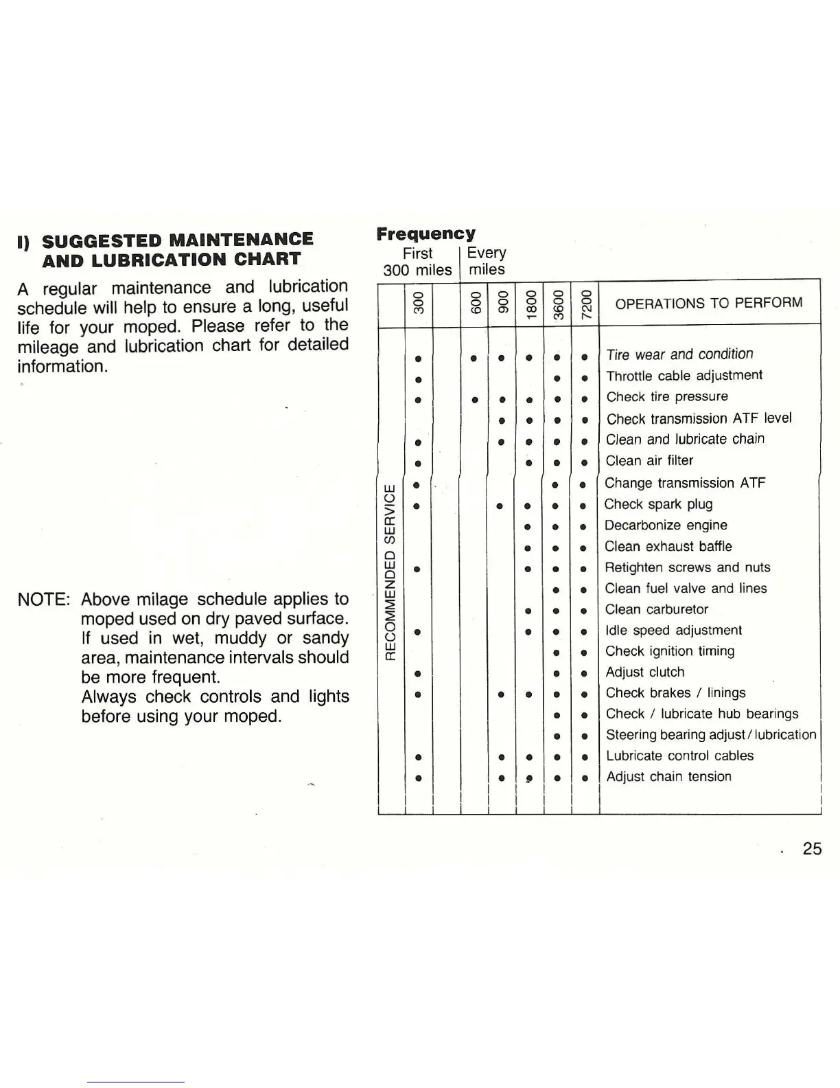 Puch Maxi - Maintenance and Lubrication Chart