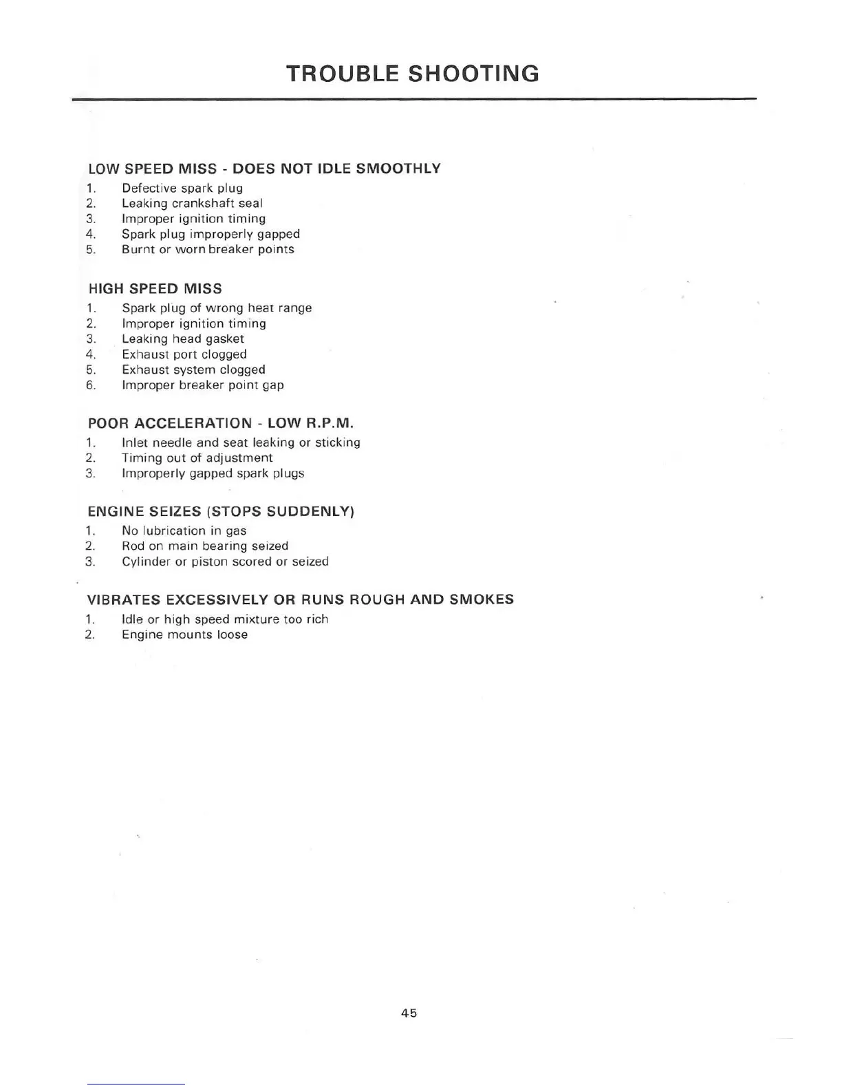 Puch murray - Low Speed Miss; High Speed Miss; Engine Seizes; Vibrates Excessively or Runs Rough and Smokes