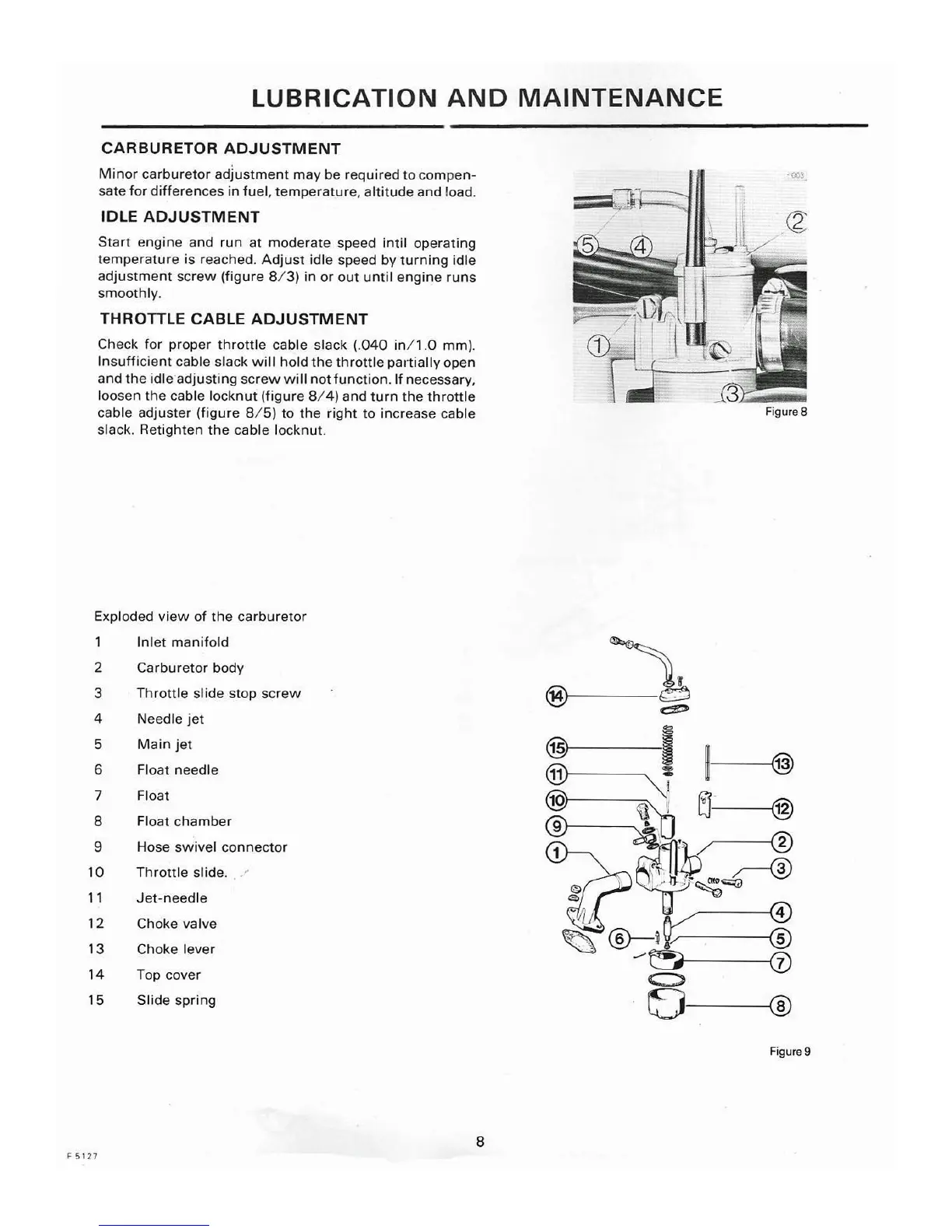 Puch murray - Carburetor Adjustment; Idle Adjustment; Throttle Cable Adjustment; Exploded View of the Carburetor