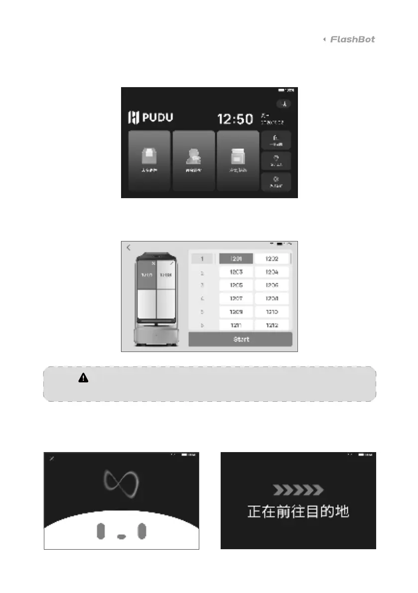 进入客房送物界面,初始密码为0000。放置物品并输入舱体对应的目标点,点击开始,机器人自动前往目标点。