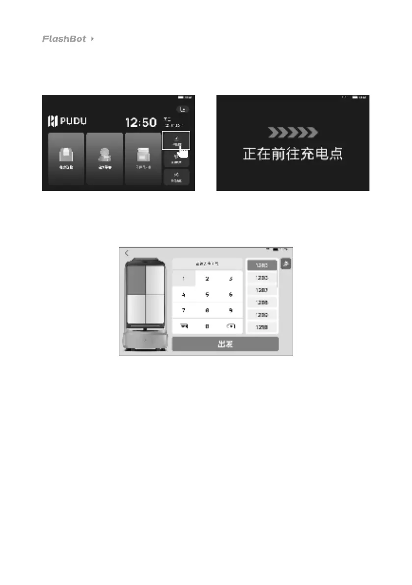 点击“一键回充”按键,机器人自动前往充电桩充电。