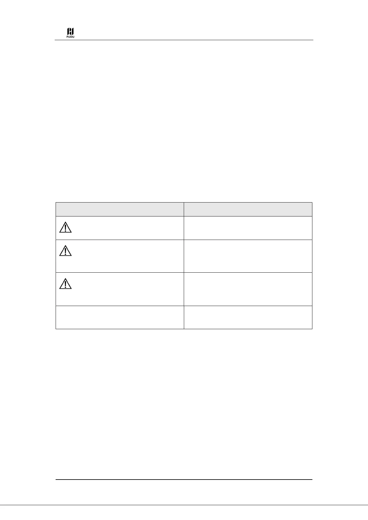 Indicates potential risks, which could cause robot