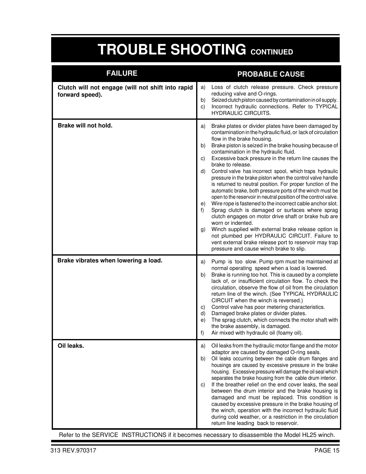 Refer to the SERVICE INSTRUCTIONS if it becomes necessary to disassemble the Model HL25 winch.