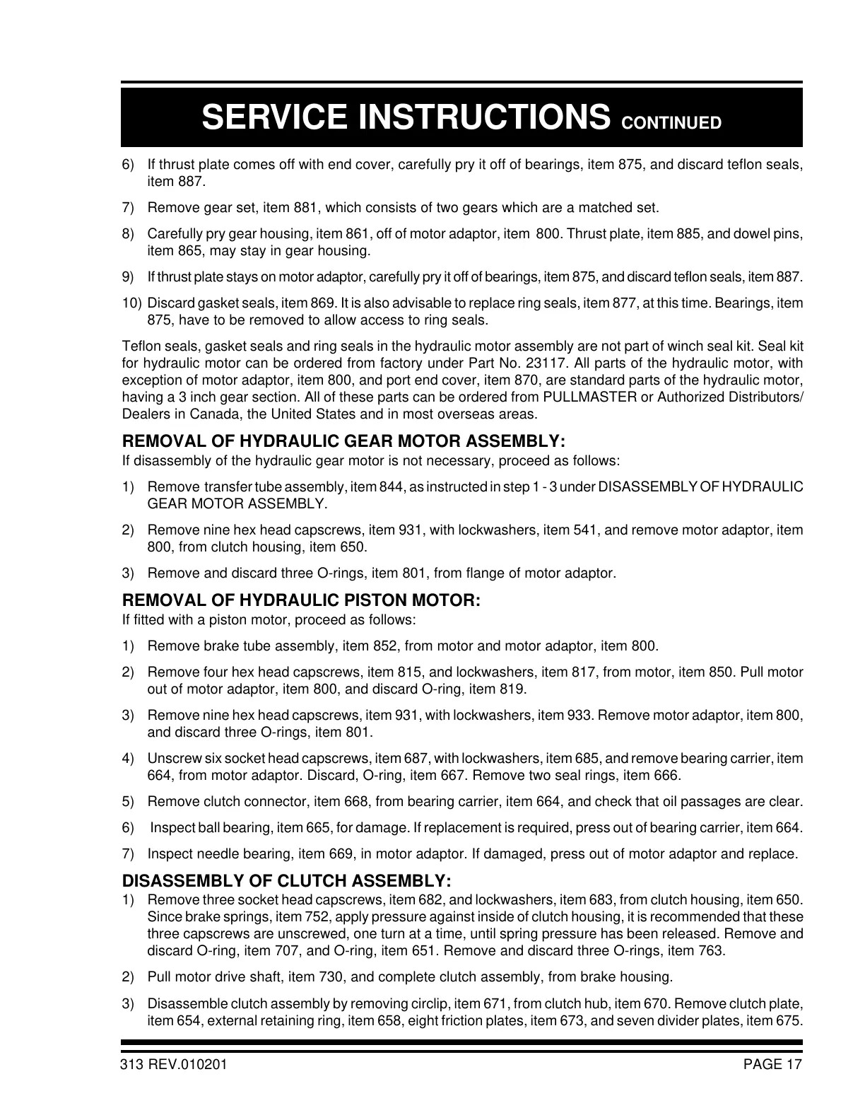 for hydraulic motor can be ordered from factory under Part No. 23117. All parts of the hydraulic motor, with