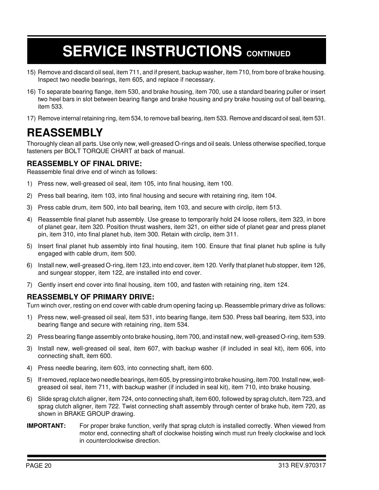 16) To separate bearing flange, item 530, and brake housing, item 700, use a standard bearing puller or insert