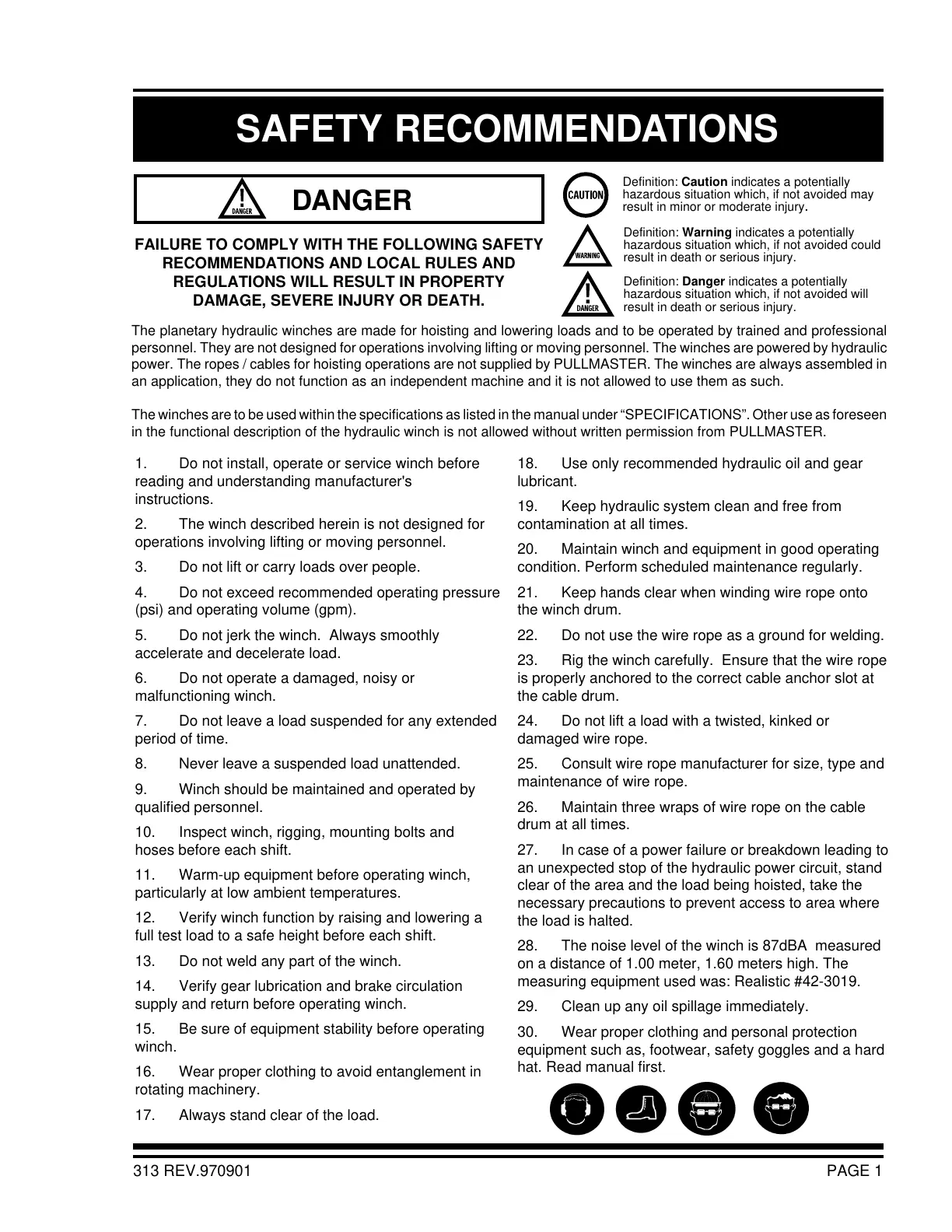 power. The ropes / cables for hoisting operations are not supplied by PULLMASTER. The winches are always assembled in