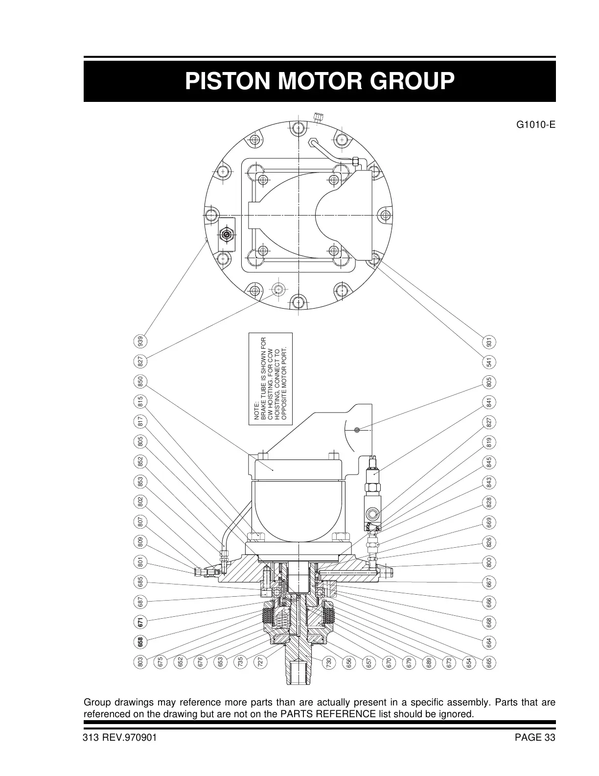 Group drawings may reference more parts than are actually present in a specific assembly. Parts that are