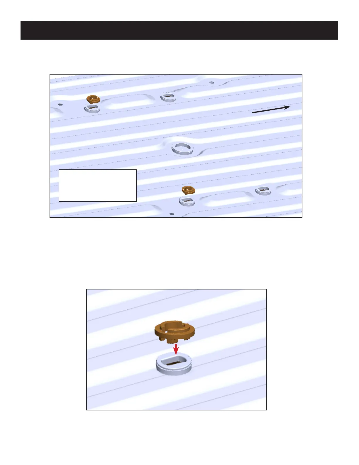 1. Place the (2) Brass Puck Washers into the OE pucks on the side closest to the cab, make sure to orient the Washer