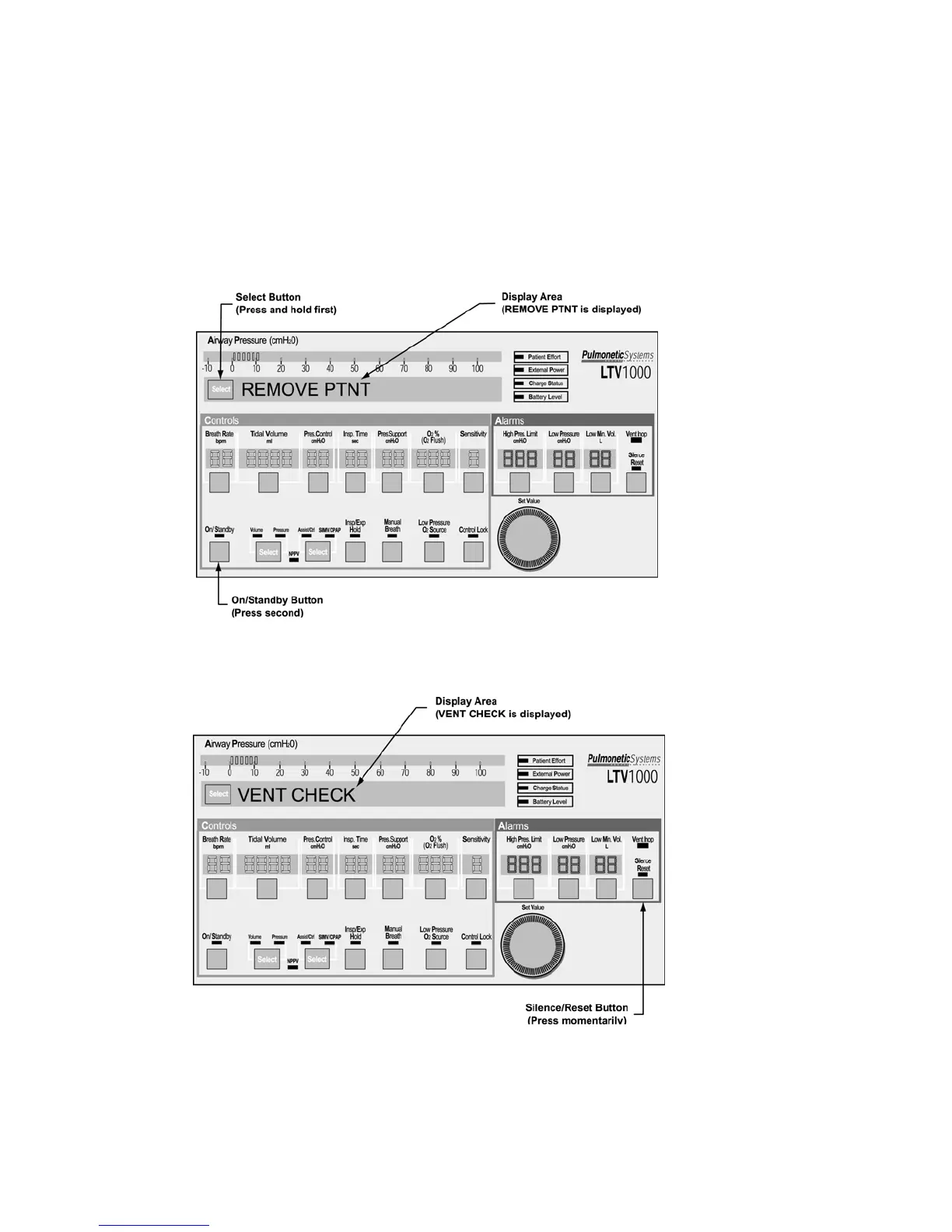 button. REMOVE PTNT should be displayed; if not, power down the ventilator and repeat steps