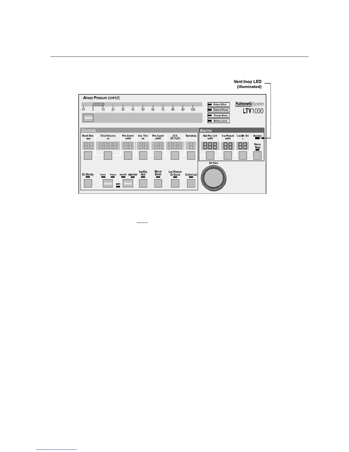 • The Vent Inop LED illuminated continuously for the full 15-second duration.