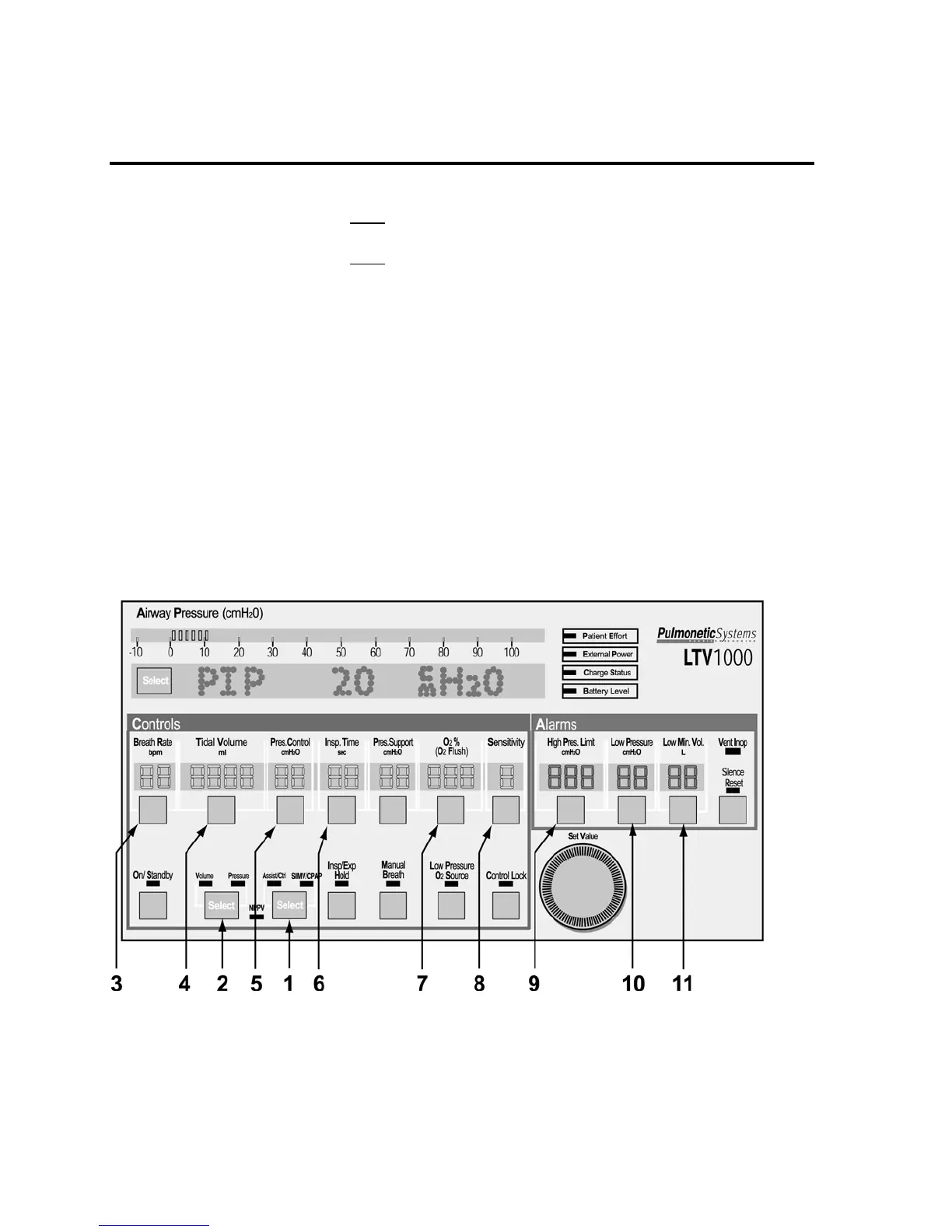 5) If Pressure ventilation is selected, establish the Pressure Control (Not available on LTV