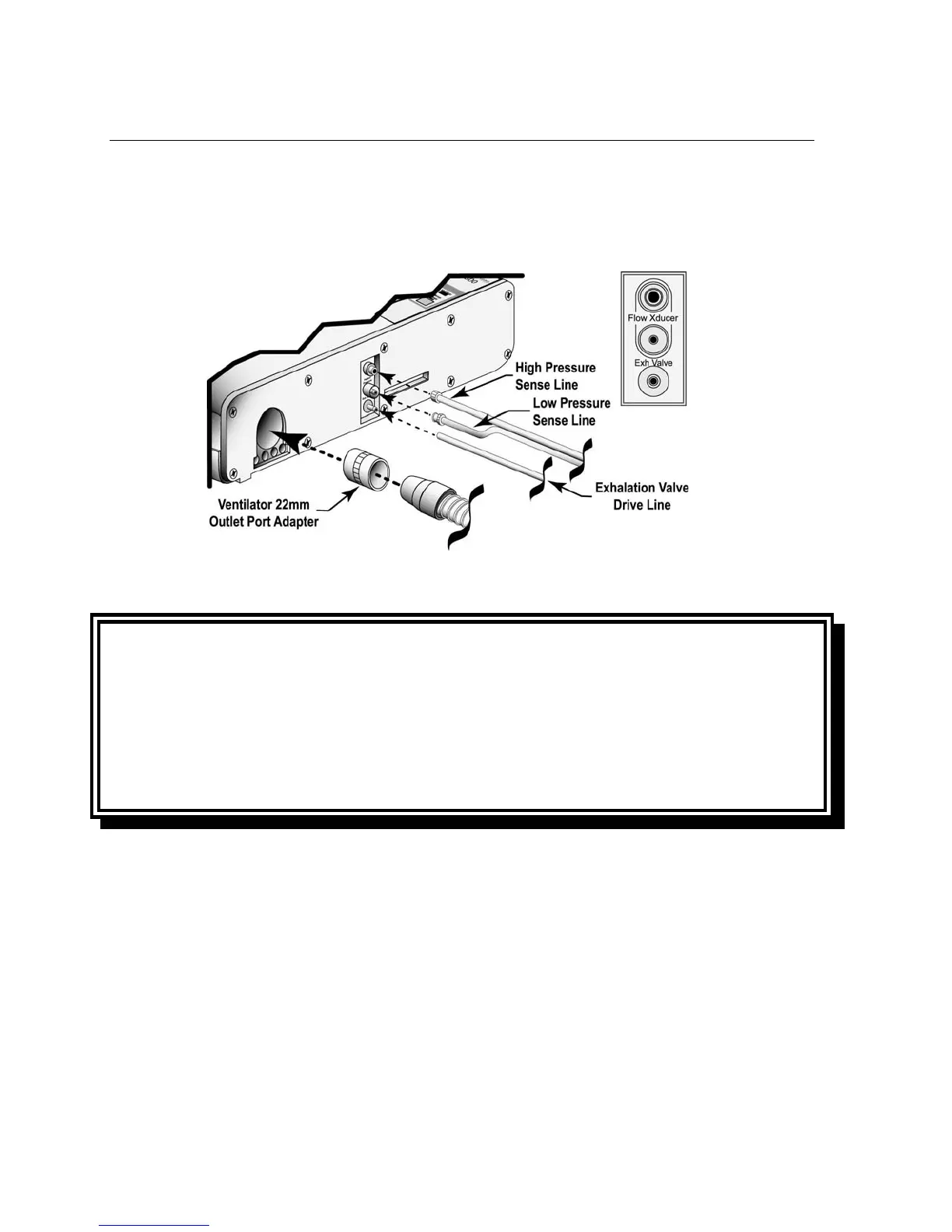 2) Connect the two exhalation flow transducer sense lines to the ports marked Flow Xducer on the