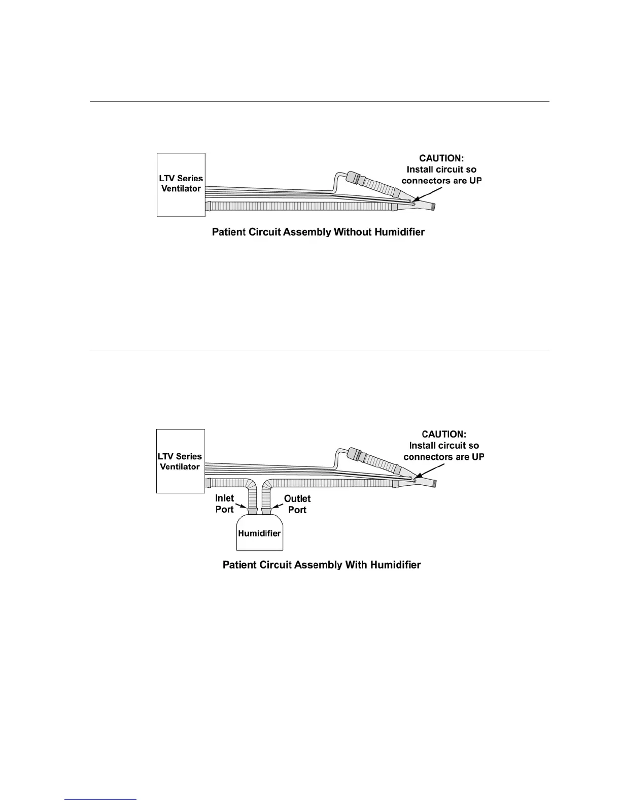 2) Connect the humidifier circuit tube (not included in reusable circuit configurations) to the 22mm
