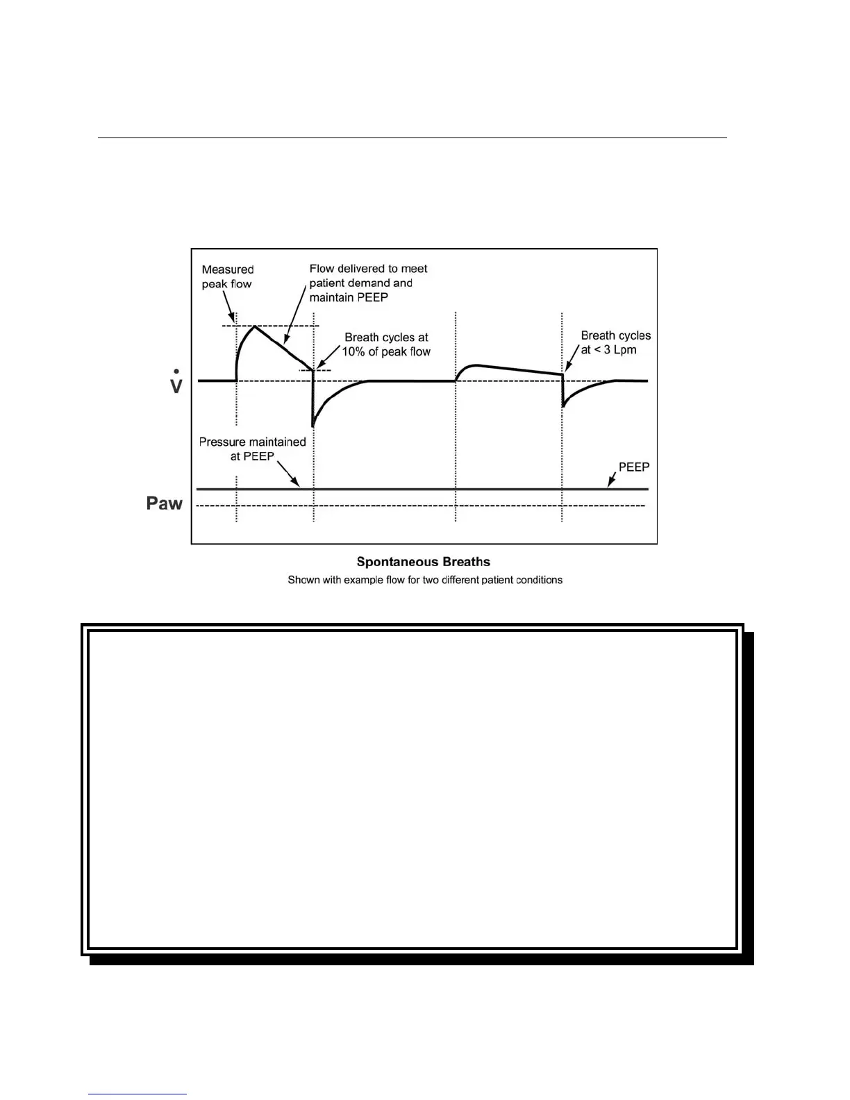 10% of the maximum flow delivered during the breath, or below 3 lpm. Spontaneous breaths may