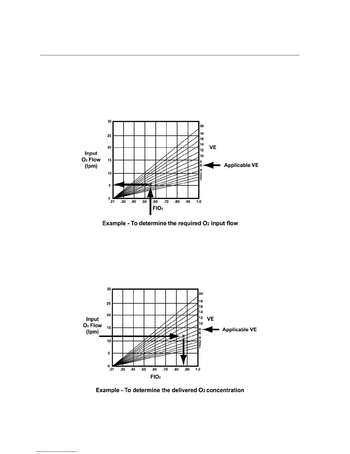 up to the applicable slanted VE (minute volume) line (right side of chart).