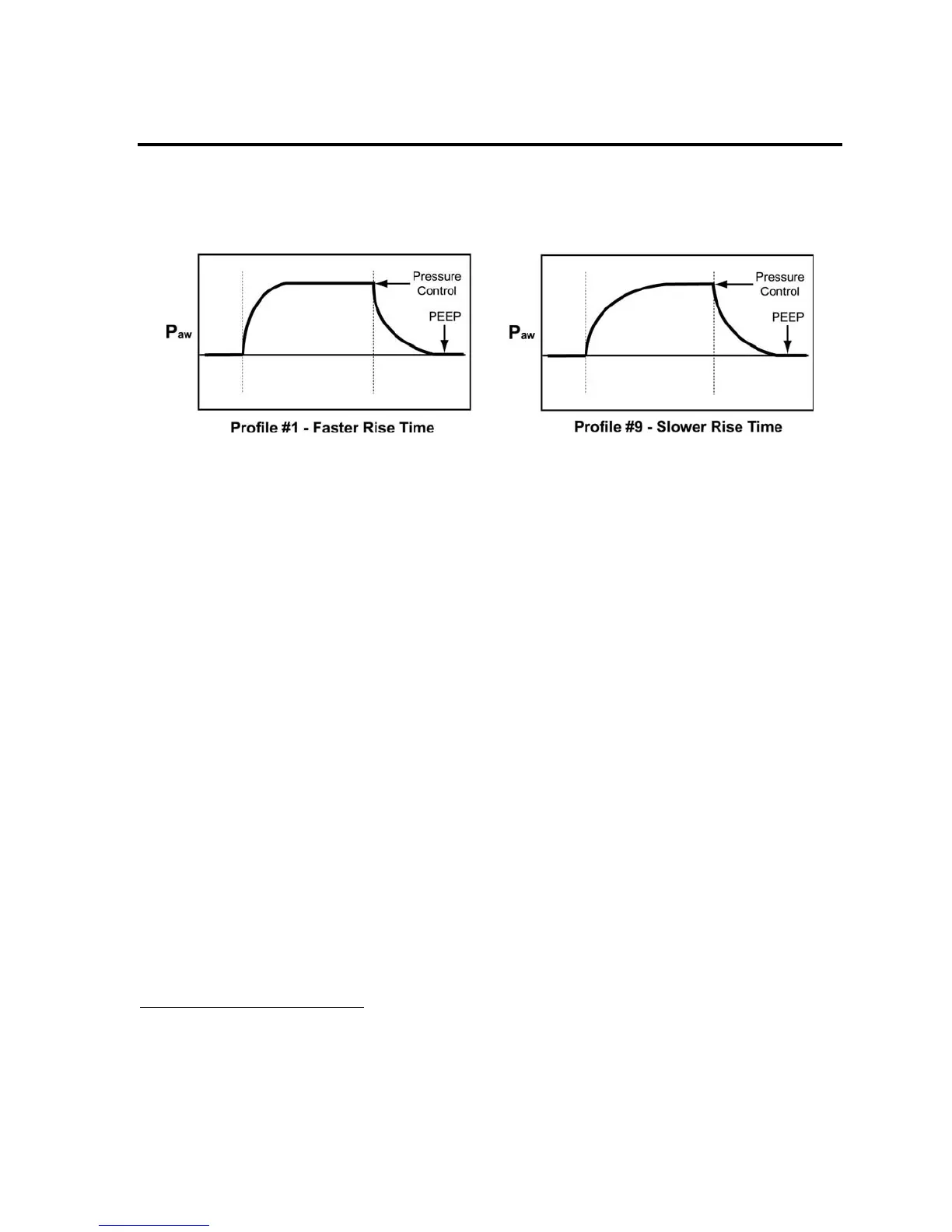 The Rise Time profile for Pressure Support breaths may be selected under Extended Features