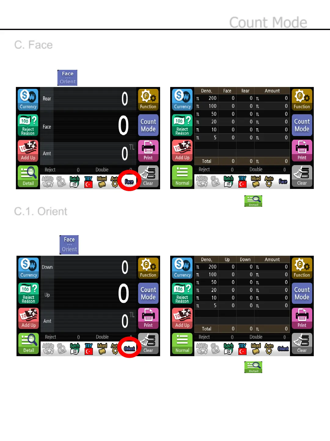 To scan the first banknote and place all other notes in the same direction ( up/down) in the stacker. Any
