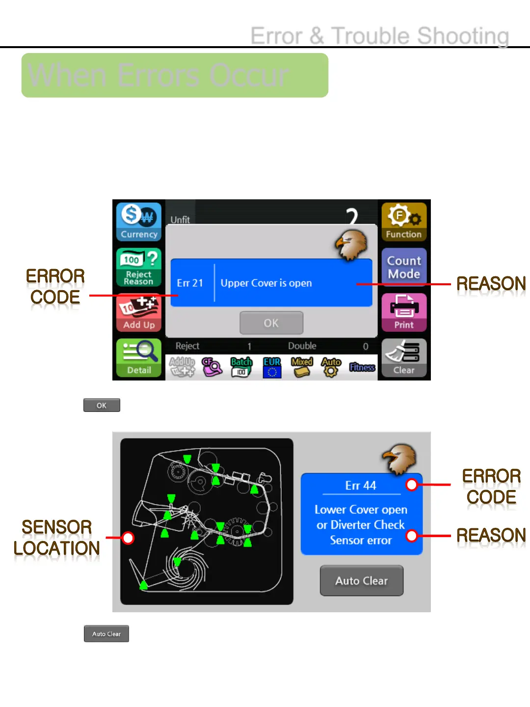 Puloon Eagle Eye 7 - Error & Trouble Shooting; When Errors Occur