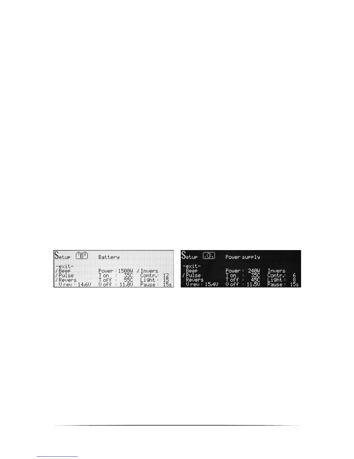 Pulsar 3 has two equivalent device memory settings – Setup. One of them is marked with a battery symbol and