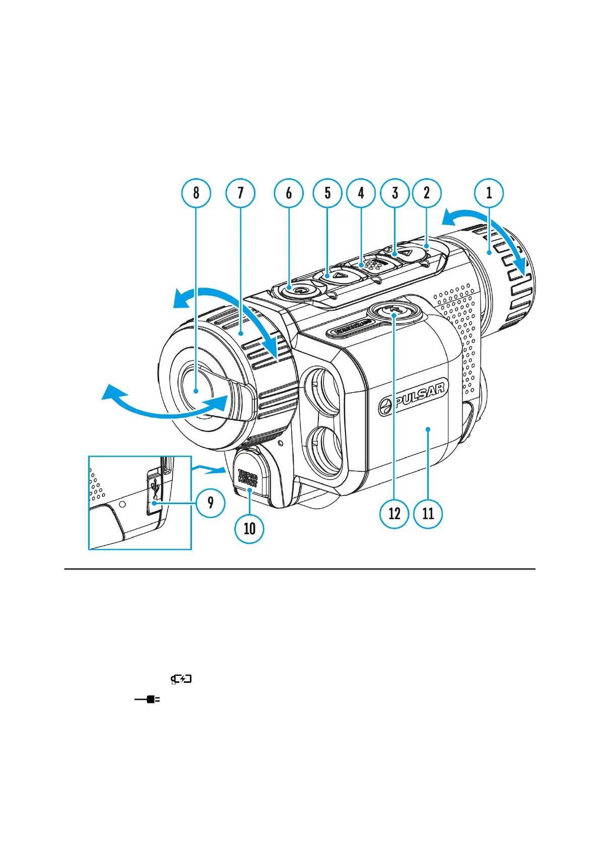 Connect the external power source to the USB Type-C connector (9) on the device.