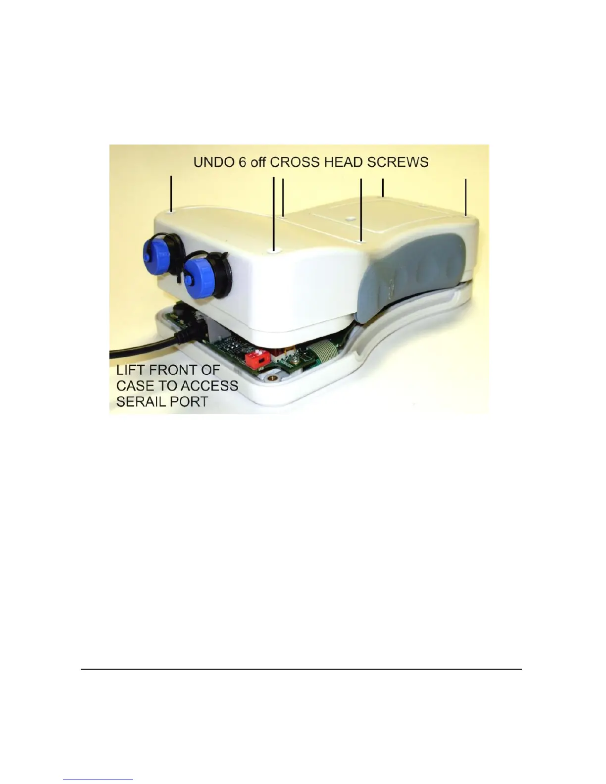 6) Connect the serial to USB cable to the RJ11 socket located on the top