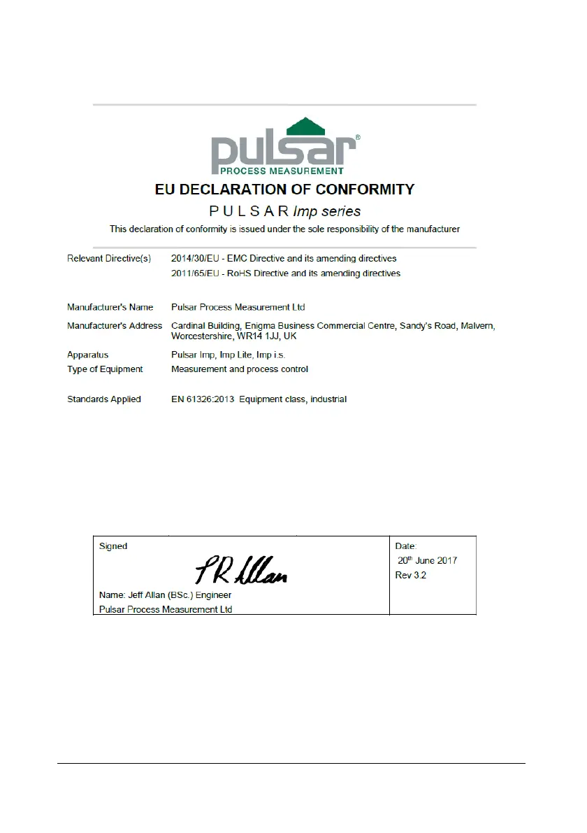 Pulsar IMP Lite Series - EU Declaration of Conformity