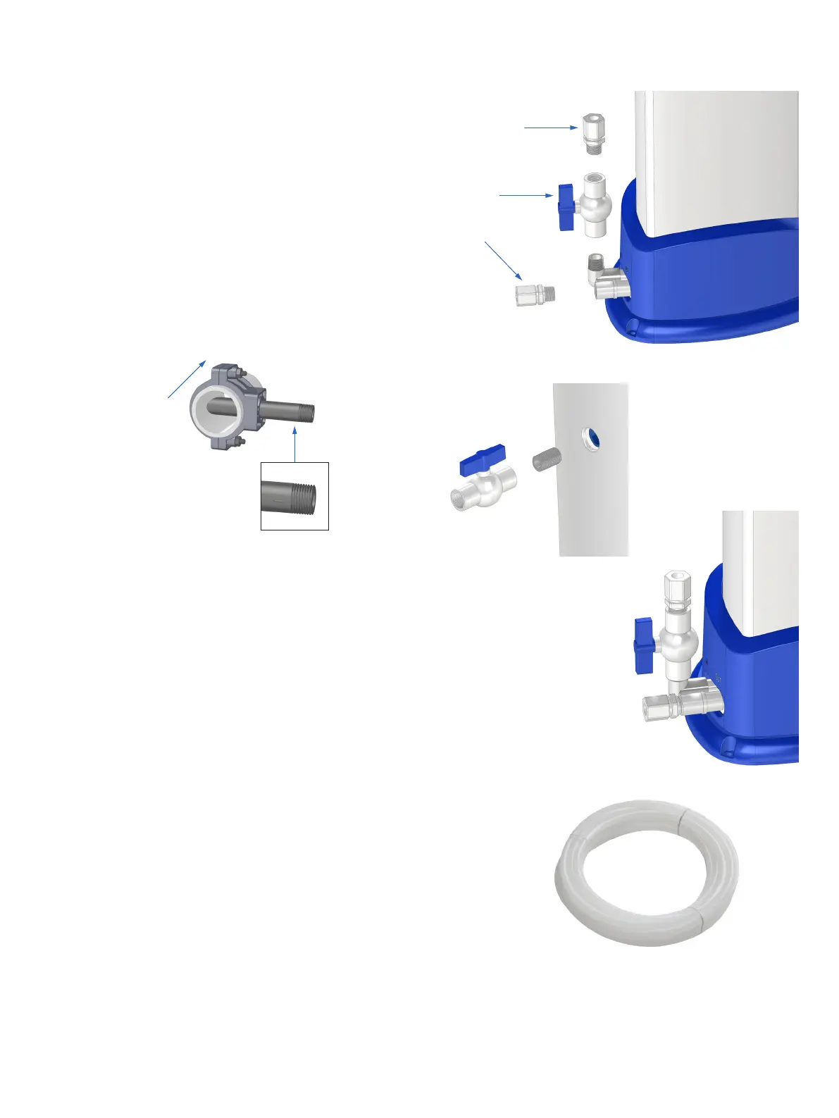 2. Connect part D, ball valve, and part G, closed nipple to the drain
