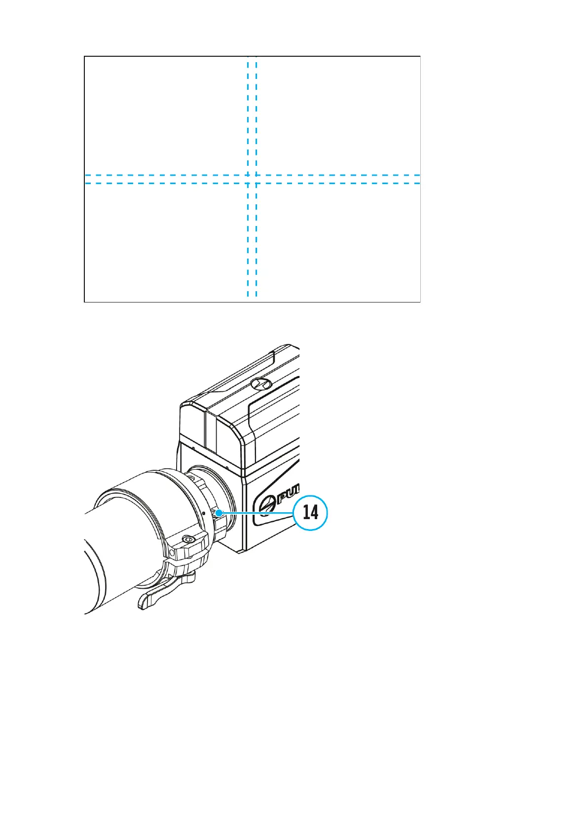 5. By tilting the thermal imaging module, align the center of the image in the eyepiece of