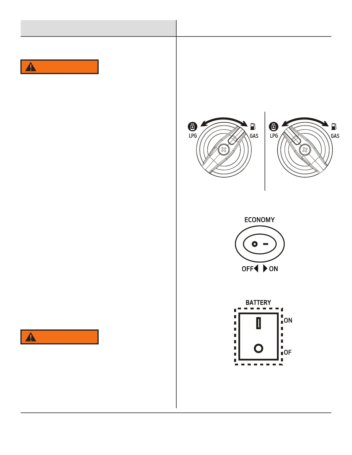 When the switch is in the LPG position, the generator is ready to
