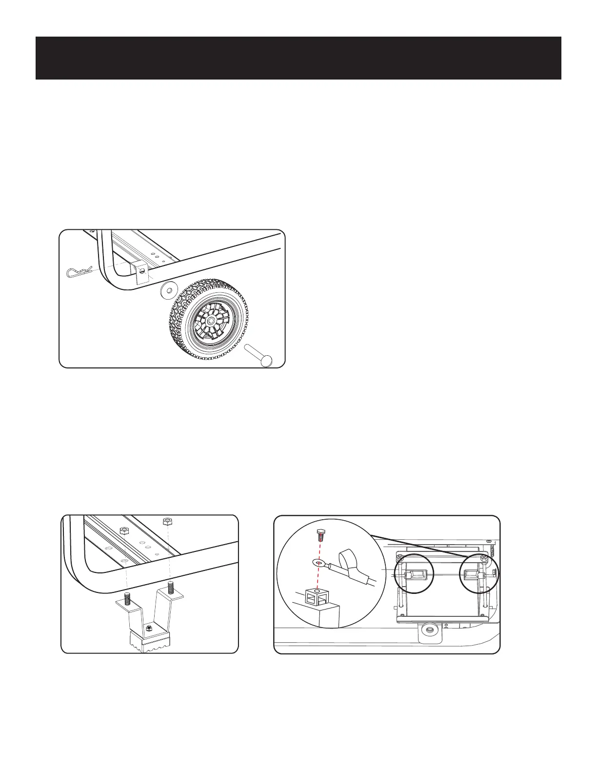 • Secure the wheel assembly by reinserting a hair pin through hole at the end of the wheel axle and pressing until it locks