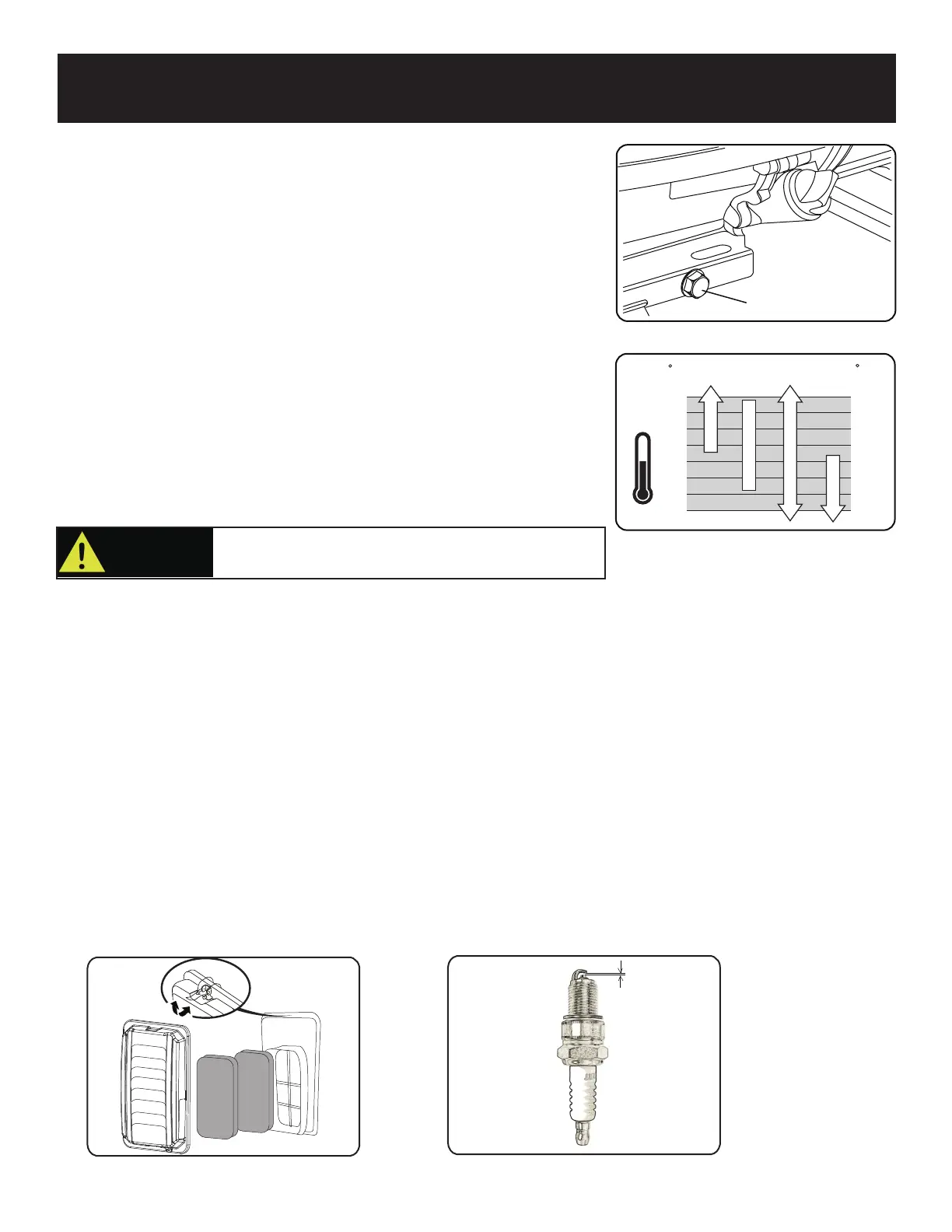 • If spark plug is worn replace only with an equivalent replacement part. Spark plug should be replaced annually.