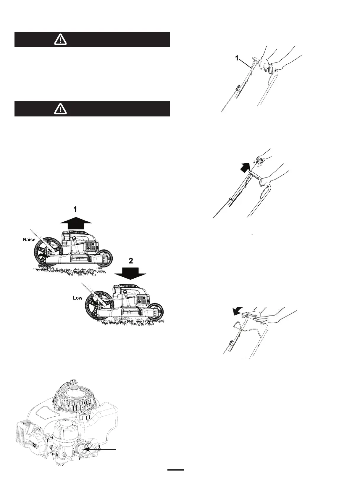 1. Levanta el cortacésped 2. Bajar el cortacésped