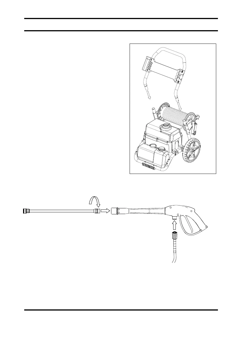 Insert the high pressure hose to the the gun and tighten to secure it.