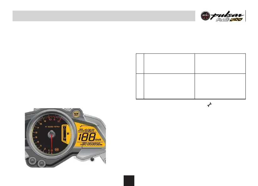• ‘Wrench’ symbol glows when ODO meter reading