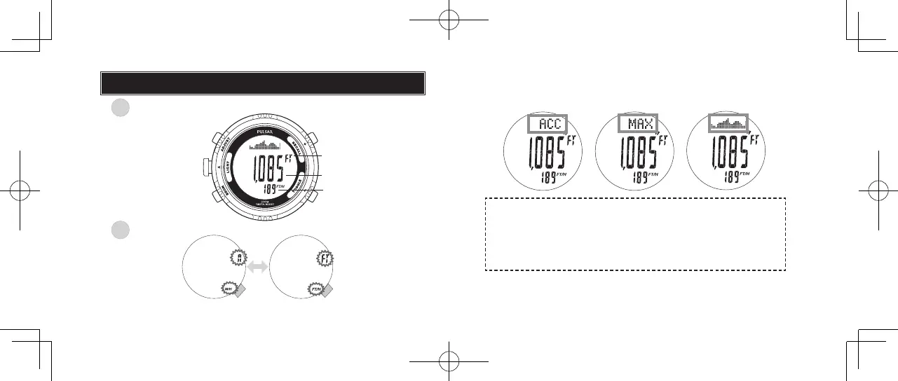 Upon entering the ALTIMETER mode, the accumulated altitude and maximum