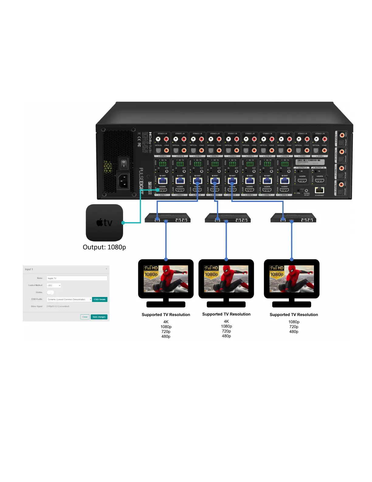 Inthisscenario,HDMIInput1willlimittheresolutionofthesourceto1080pinaccordancewiththe
