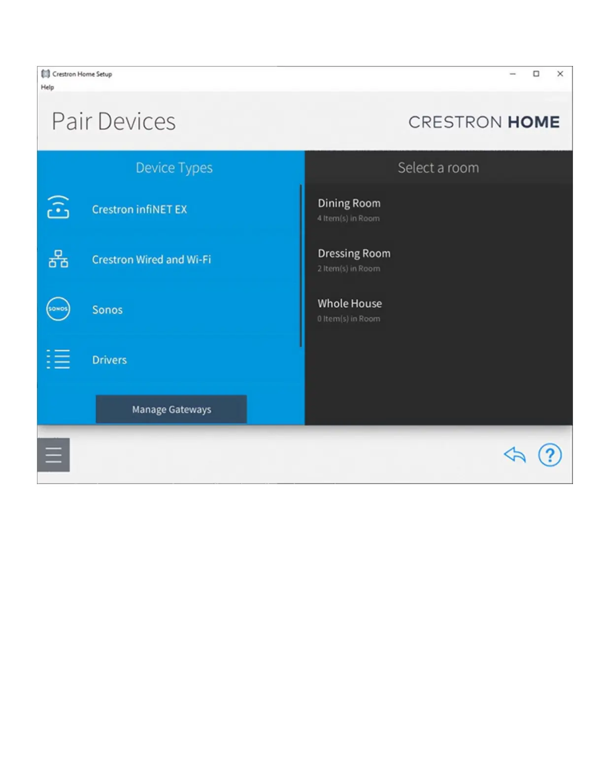 2.InthePairDevicessectionoftheCrestronHomeconfigurationpleaseselectDrivers,andthenthe