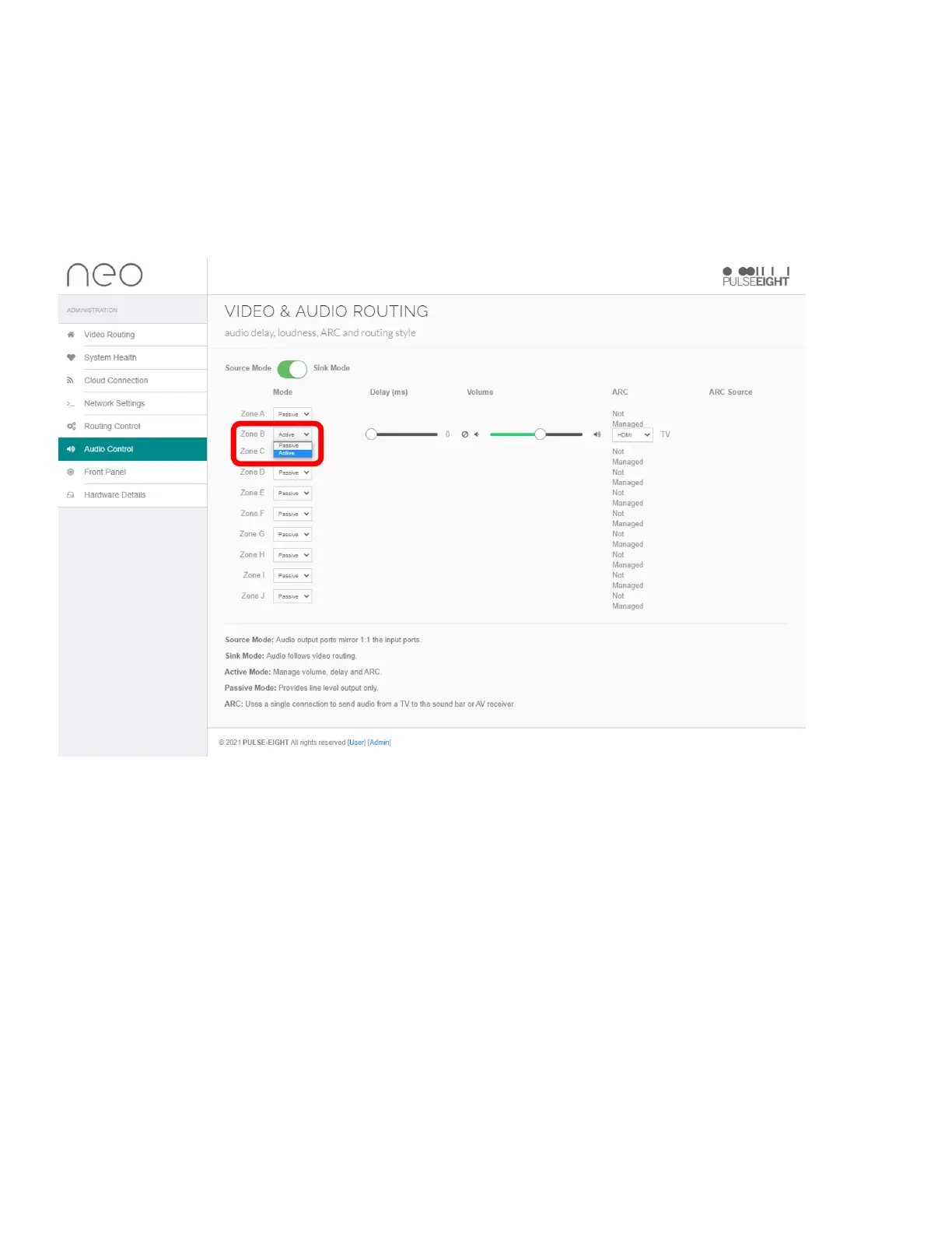 Passivemodeprovidesastandardline-leveloutputwhichmeansallaudiodelay,volume,ARCare