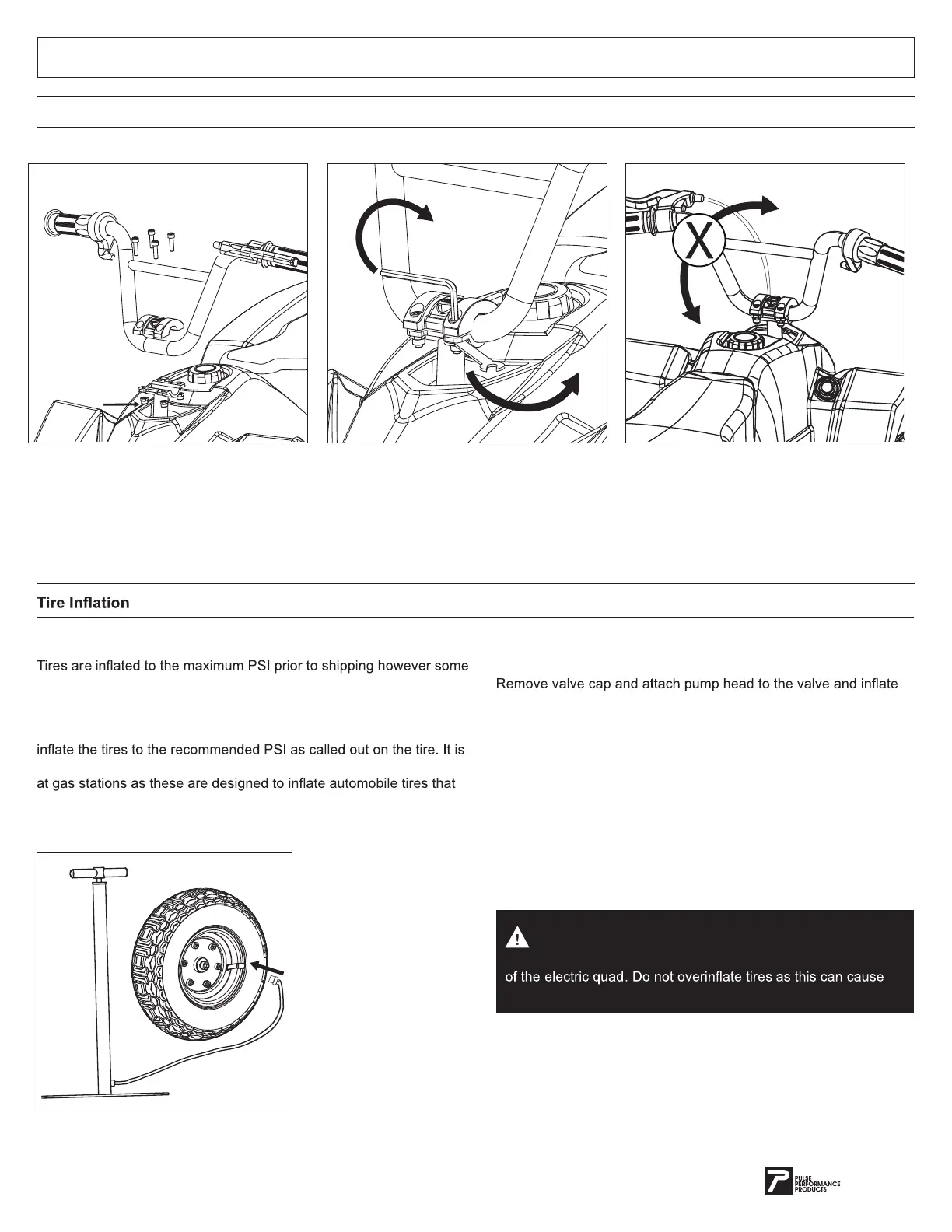 tires to the recommended PSI called out on the tires. Replace the