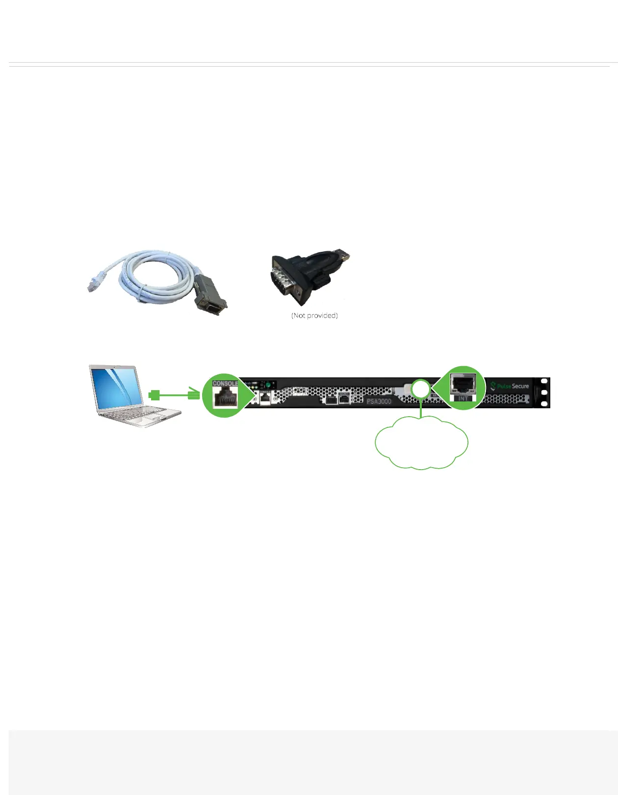 Connect the RJ45 end of the cable to the appliance port labeled CONSOLE and the DB9 end to a laptop.