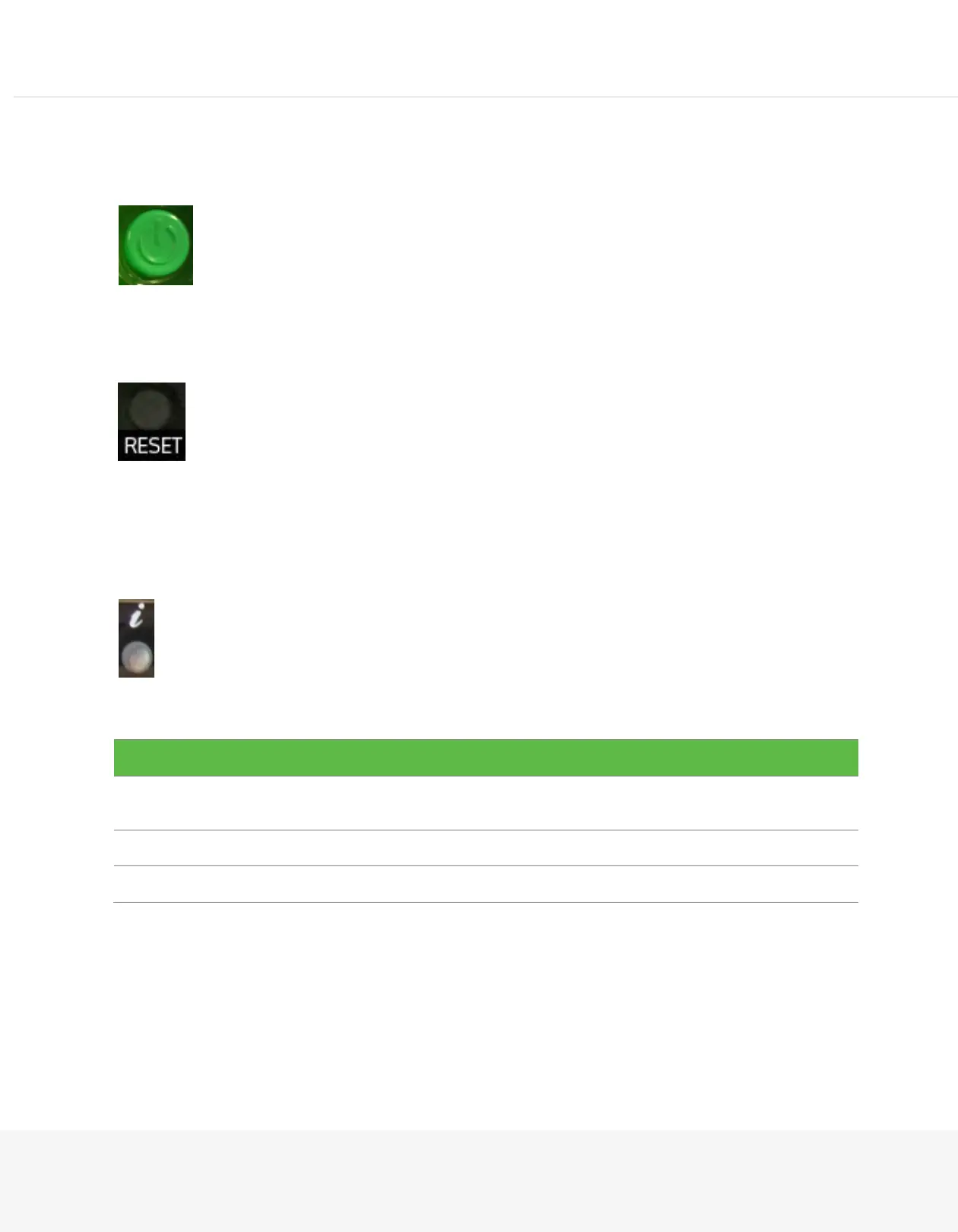 Information LED: Alerts operator of several states, as noted in the table below: