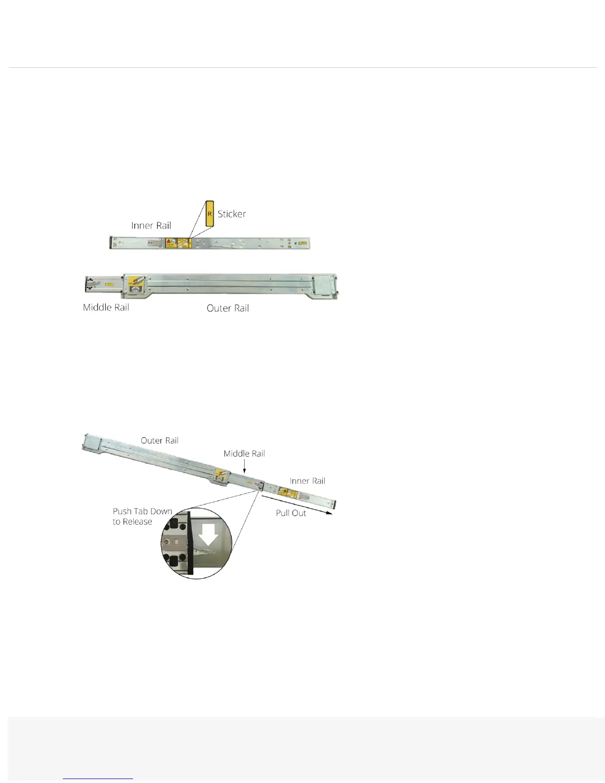 Each assembly has 3 parts: inner rail, middle rail, and outer rail.