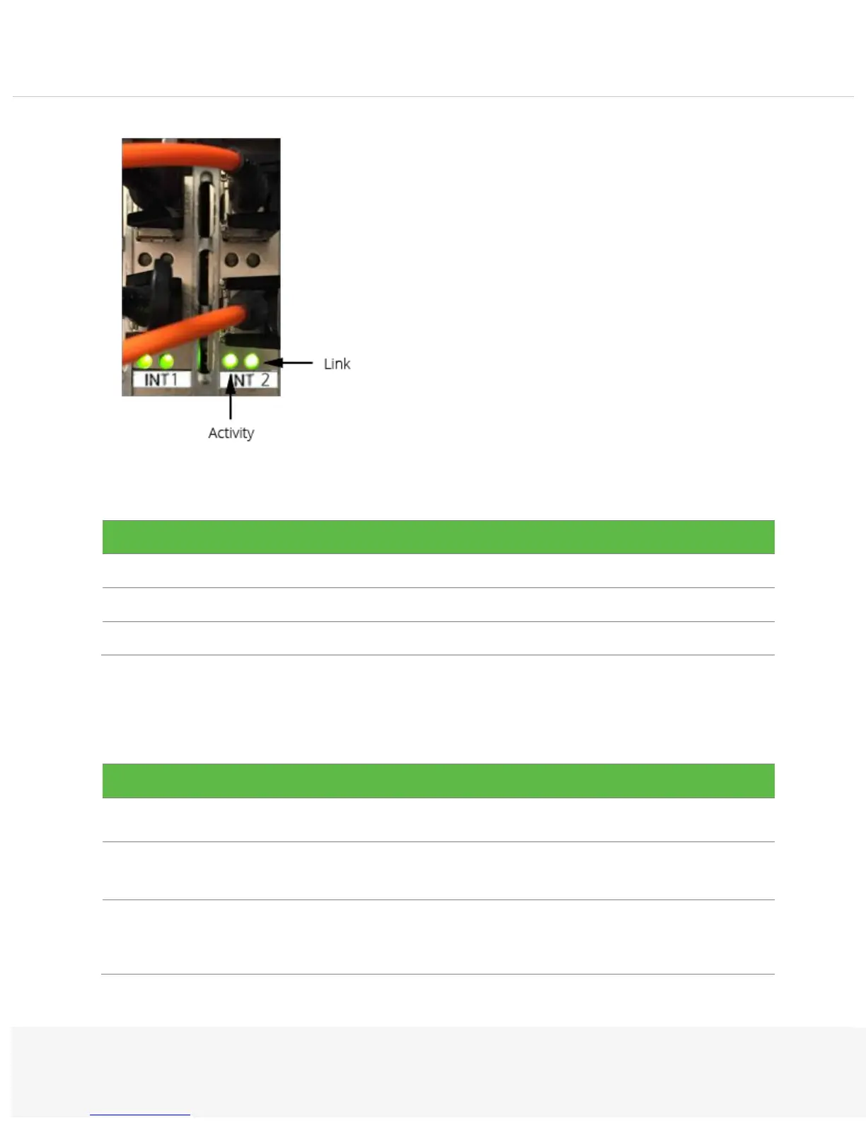 Each SFP+ connector has two LEDs. The LED on the left indicates the activity status of the connector.