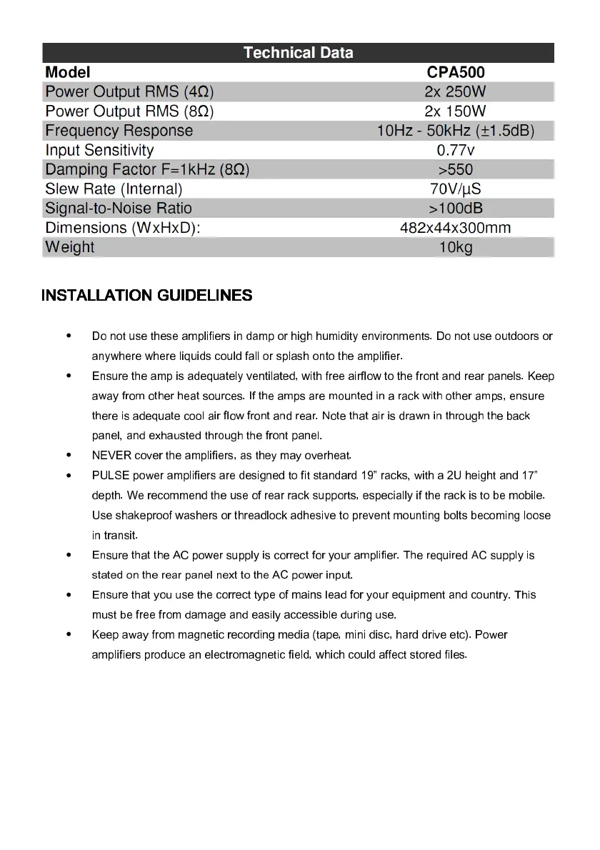 away from other heat sources. If the amps are mounted in a rack with other amps, ensure