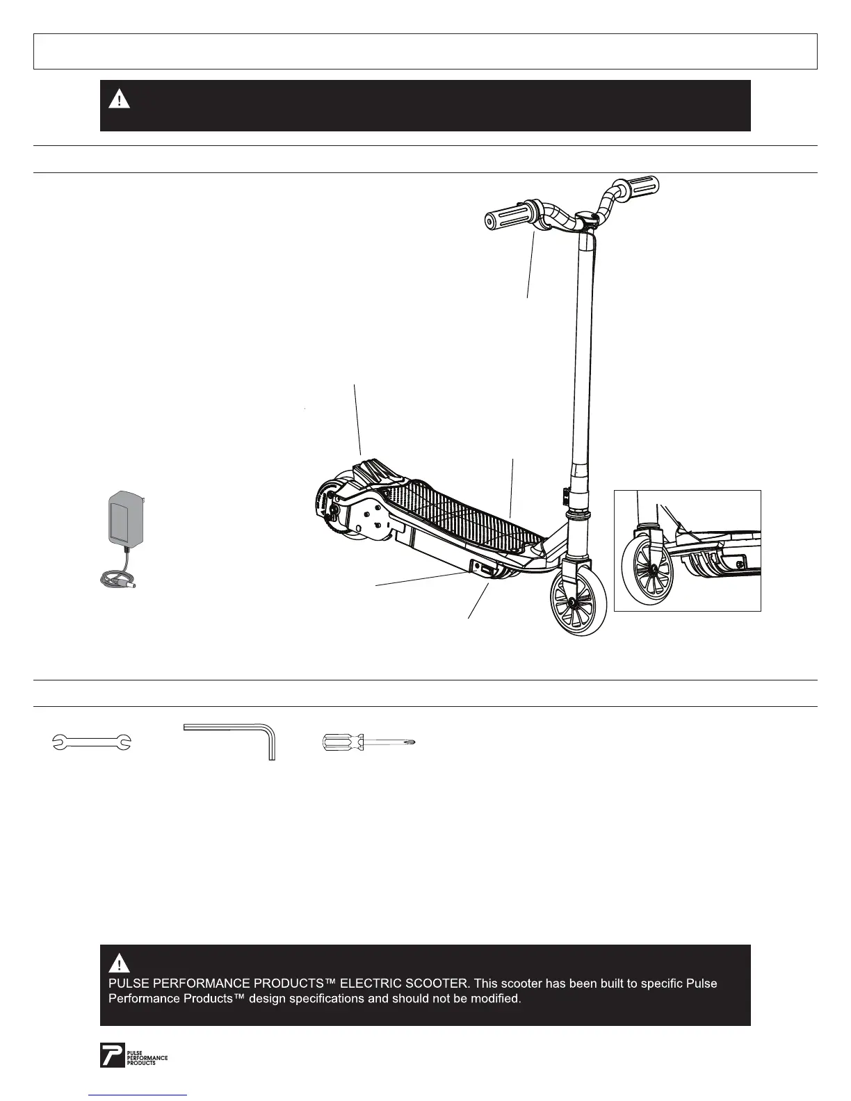 4 Questions or concerns? Visit our website at www.pulsescooters.com for replacement parts and technical support, or call (866) 434-6067.