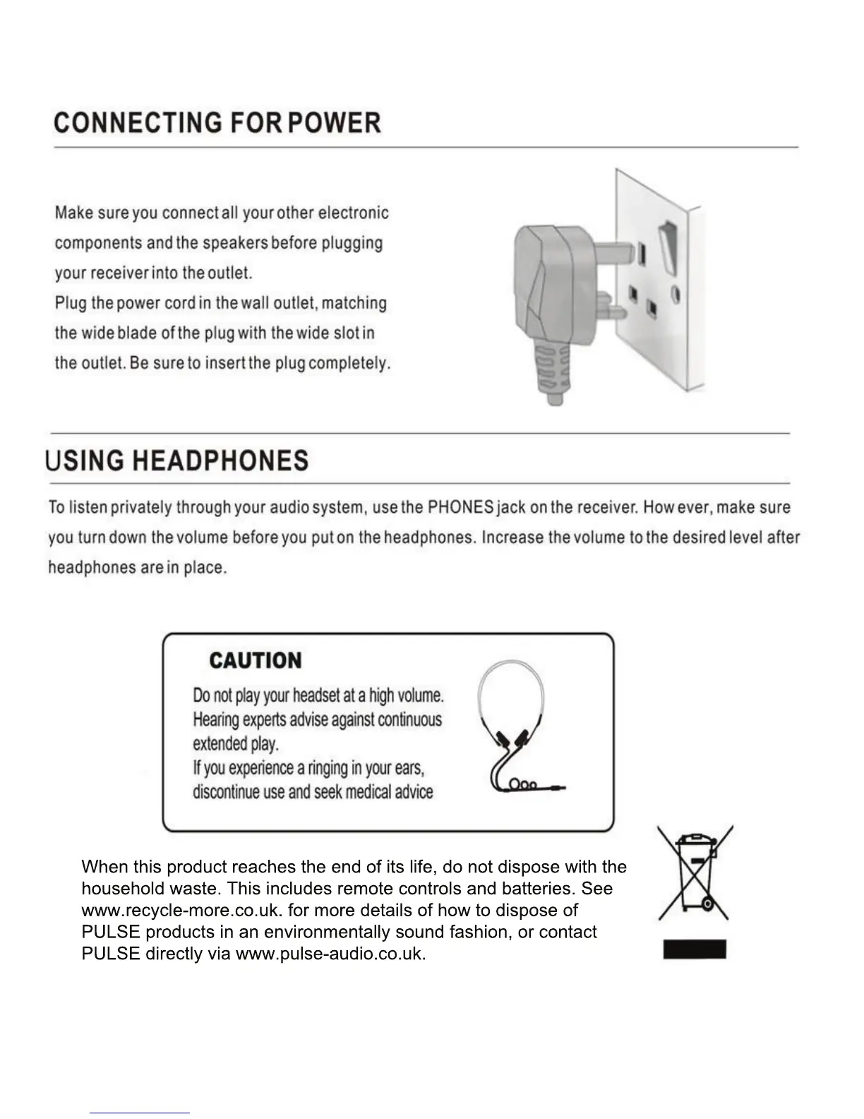Pulse SRA-160USB - Connecting for Power; Using Headphones