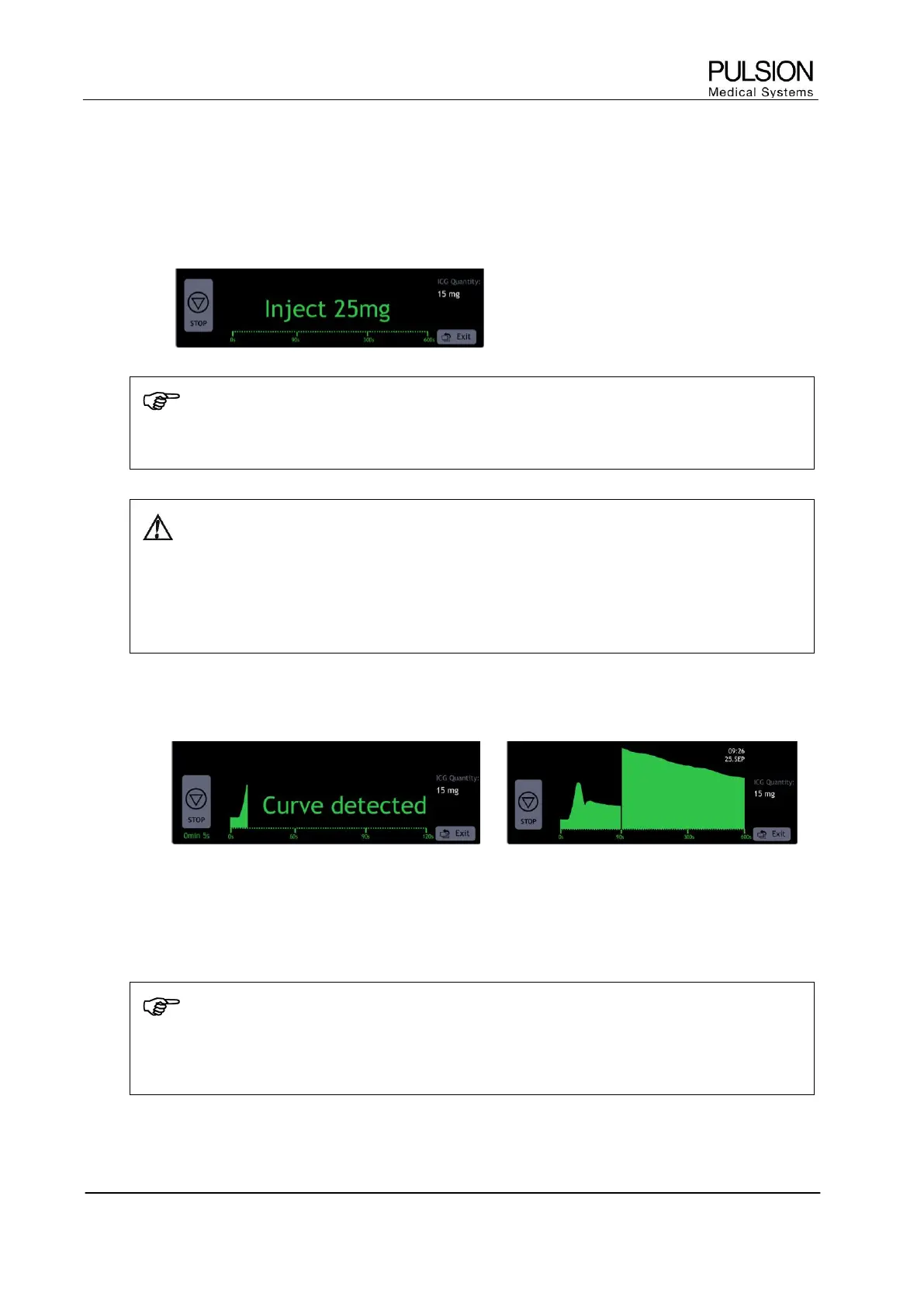 5 When message “Inject XXmg” appears, inject the prepared ICG solution into a central or peripheral