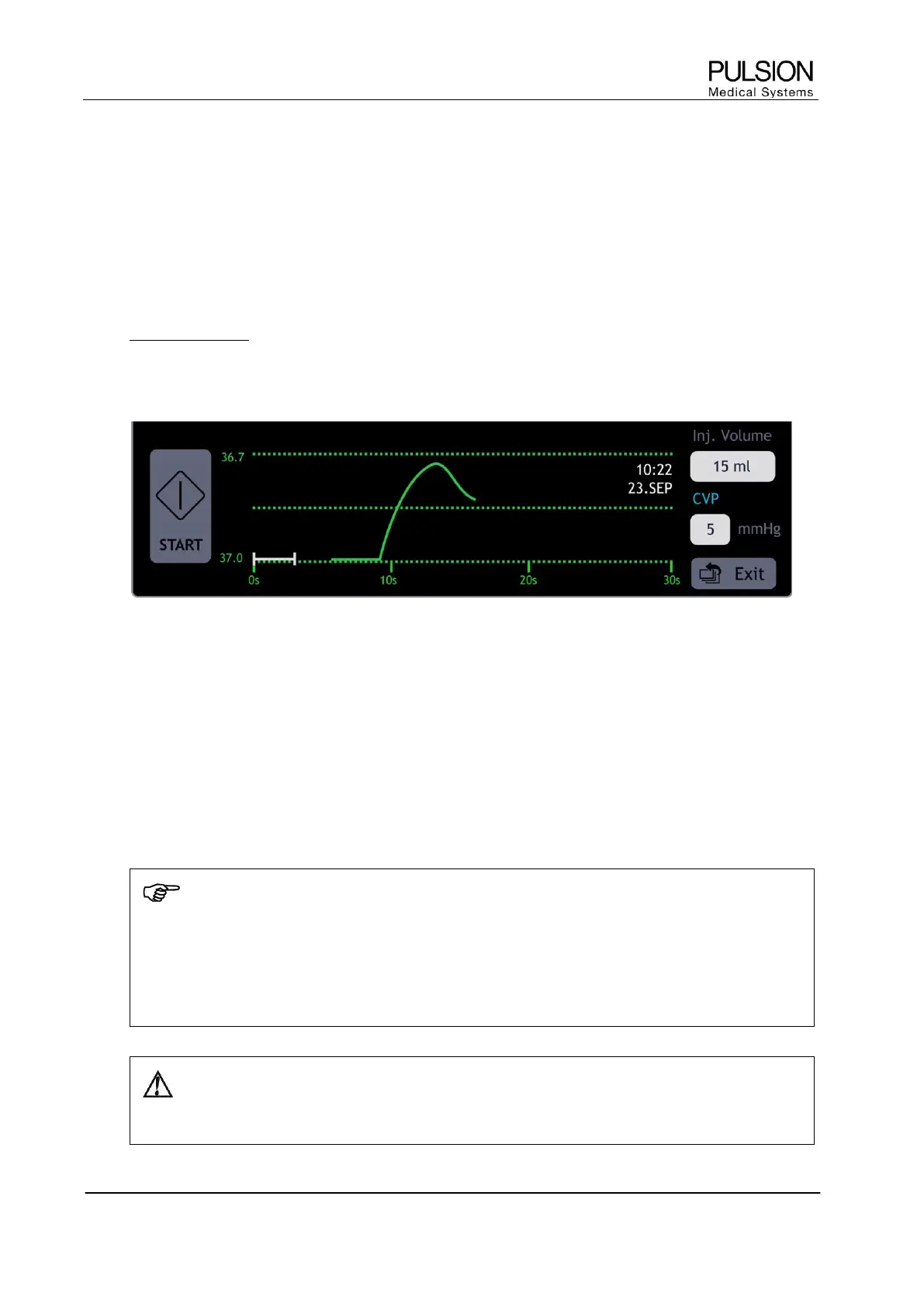 x The used injectate volume (Vinj), the measured injectate temperature (Tinj) and ∆T can be verified in